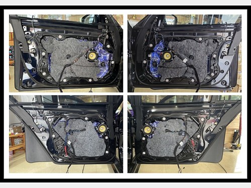 寶馬530LI原車(chē)門(mén)板鐵皮結(jié)構(gòu)單薄,內(nèi)部空洞結(jié)構(gòu)也很多,風(fēng)噪很容易通過(guò)門(mén)板傳入到車(chē)廂內(nèi)部,因此為了使車(chē)內(nèi)環(huán)境安靜,滿(mǎn)足音響效果充分發(fā)揮。在升級(jí)音響前,改裝技師需對(duì)門(mén)板先進(jìn)行隔音處理。好的隔音材料才能事半功倍,于是改裝師使用的是大能藍(lán)金鋼,既減少了風(fēng)噪的傳入,同時(shí)也減少了門(mén)板自身產(chǎn)生的噪聲。