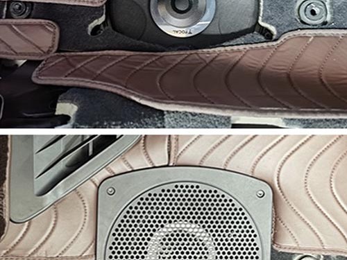 勁浪BMW4低音喇叭原位無(wú)損安裝在前聲場(chǎng)座位底下及復(fù)原效果