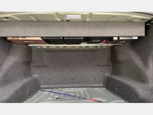 兩臺(tái)聲場(chǎng)功放勁浪FPX 4.800以及一臺(tái)超低音功放詩(shī)芬尼H800.1功放一起整齊吊裝在尾箱頂部,這樣能夠最大限度的節(jié)省尾箱的存儲(chǔ)空間