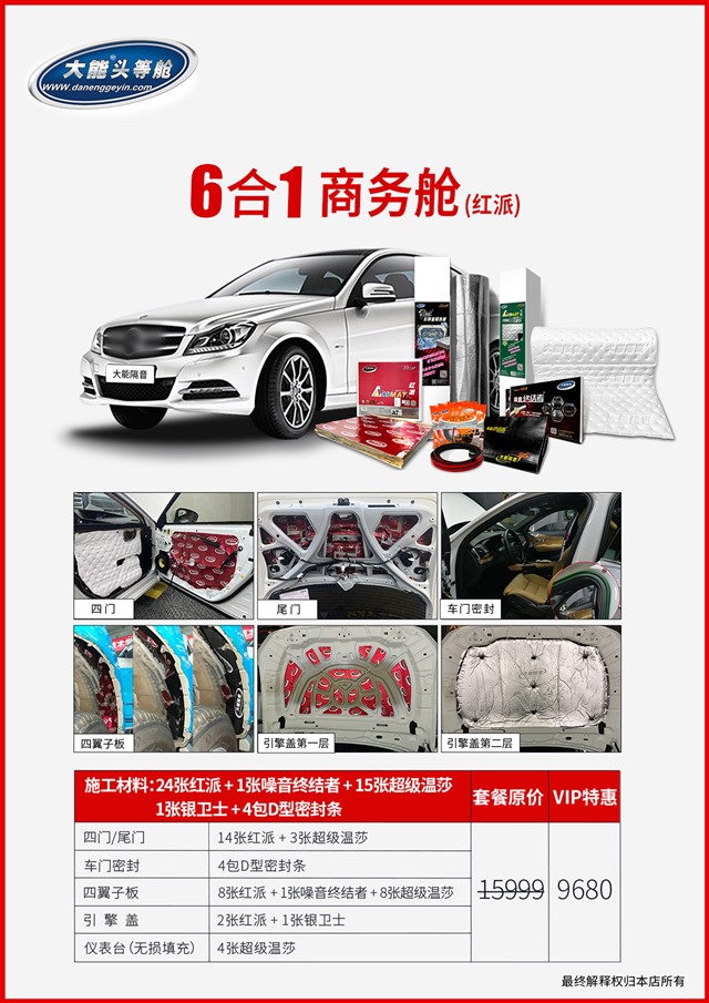 使用大能紅派對引擎蓋做第一層隔音,銀衛(wèi)士做第二層隔音