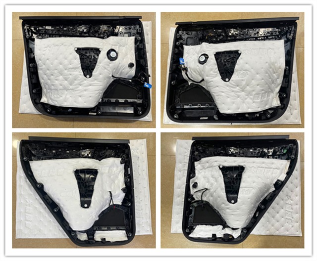 最后使用超級溫莎對門板飾蓋進行隔音填充,過濾殘余噪音,總共三層隔音,不僅提升門板的密封度降低噪音,開關門也可感受到讓人踏實的厚重感