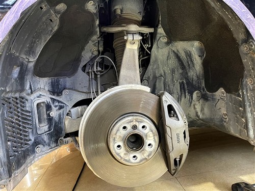 將輪胎拆下,即將對空禿禿的前輪進行隔音處理