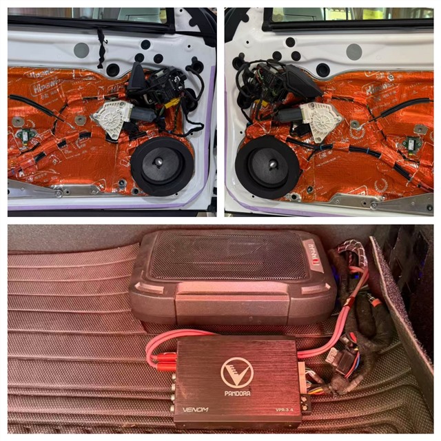 在施工過程中,泉州海林的師傅展現(xiàn)了精湛的工藝水準。前后門板的安裝還原工作尤為細致,嚴格按照原廠標準進行施工,升級后的門板外觀與原車保持一致,完全看不出換裝痕跡,既保證了音響效果,又不破壞車輛的原廠質(zhì)感。