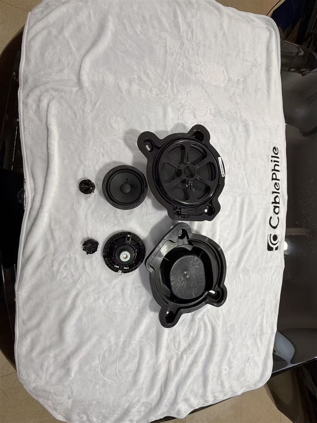 這款奔馳E300的音響配置極為“縮水”,前門板僅配備一對中音喇叭,副駕駛位置僅有一只低音喇叭,而主駕駛腳踏處的低音位置更是僅有一個空殼,內部并無實質性音響單元。更令人詬病的是,原車喇叭用料粗糙,材質廉價,這正是其音質拉胯的核心原因,也為音響升級預留了充足空間。