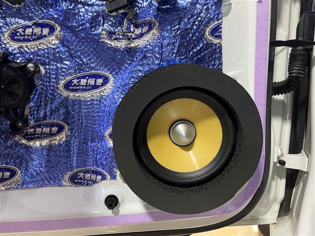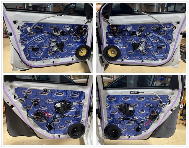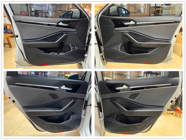 門板隔音可以消除車門鈑金的共振,減少風噪的傳入,使喇叭發聲更加清晰、混厚、澎湃。前后門板經過大能藍金剛隔音材料施工后,將勁浪中低音喇叭固定在前門板喇叭原位,可以讓中低音的表現更加優秀。