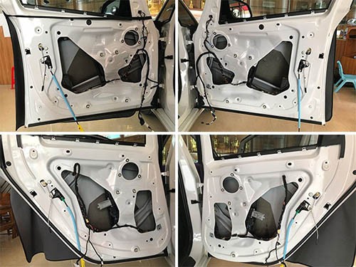 車門是車內(nèi)噪音的一個(gè)重大來(lái)源地,對(duì)這個(gè)部位隔音處理,能有效降低通過(guò)車門傳入大量的風(fēng)噪,同時(shí)隔音后的門板會(huì)形成一個(gè)扎實(shí)的箱體結(jié)構(gòu),提升鈑金強(qiáng)度,喇叭音質(zhì)音量,使低頻更加飽滿,有力。