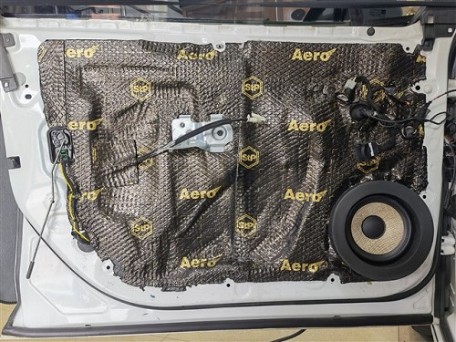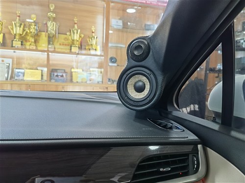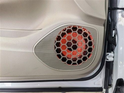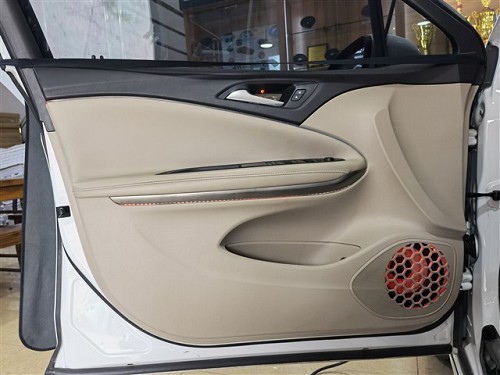 前聲場選擇法國勁浪PS 165 F3亞麻三分頻,A柱倒模安裝高音和中音,傳統8字形式,左右聲場配合形成精準的發聲朝向與相位往車廂中部發聲。中低音采用是門板喇叭位直裝方式,先在門板進行雙層俄羅斯StP航空炸彈隔音強化形成箱體效果,提升揚聲器發聲效果,同時加入墊圈和美音圈,讓喇叭久經耐用聲音更耐聽。