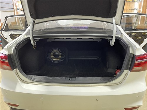尾箱安裝勁浪亞麻10寸箱體低音炮,利用一臺弗萊德單路功放進行推動,下潛深度深,聲音有力,動感十足,超高的性價比是關鍵,所以也一直深受廣大車主的喜愛。