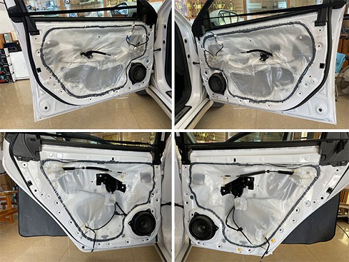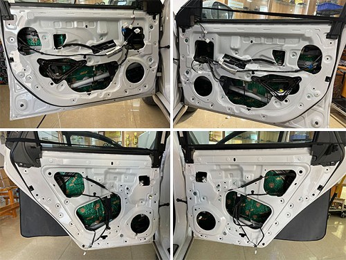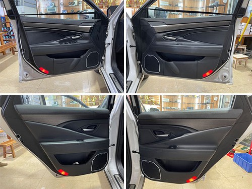 音響改裝升級前,門板做隔音是音響升級必不可少的,也是喇叭音質(zhì)的發(fā)揮的保證。隔音內(nèi)層條形止振隔音貼法,條形貼法是根據(jù)水紋隔音原理來的:外層整張隔音,增強門板氣密性,減少高速行駛時,風噪的傳入。專業(yè)的隔音貼法,讓隔音效果更加明顯。