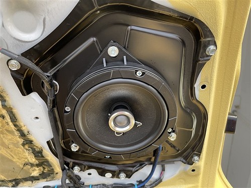 后門板原位無損安裝一對詩芬尼S61同軸,專業的改裝師還特意為喇叭加上美音圈,防止聲音擴散