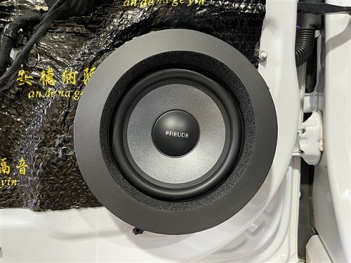 改裝師應車主要求,將前聲場替換成一套弗萊德FPK-165兩分頻,精細的做工,充足的用料根本不是原車喇叭可以比擬的。中低音原位無損安裝在門板上,既不需要對線路有過多的改造,又能獲得最佳的聽音效果。后聲場用一對弗萊德FPX-165同軸喇叭進行補充,將其安裝在汽車原位大小剛好合適,門板還原之后也看不出有任何改動的痕跡。