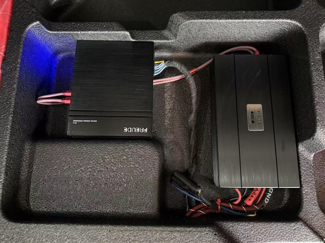 在器材安裝環節,技師充分利用車輛尾箱的空間優勢,將弗萊德FP-6處理器和弗萊德FC-1低音功放巧妙安裝在尾箱凹位處,這種安裝方式不僅避免了占用寶貴的儲物空間,還能借助凹位的結構提升器材的散熱性能,保證設備穩定運行。