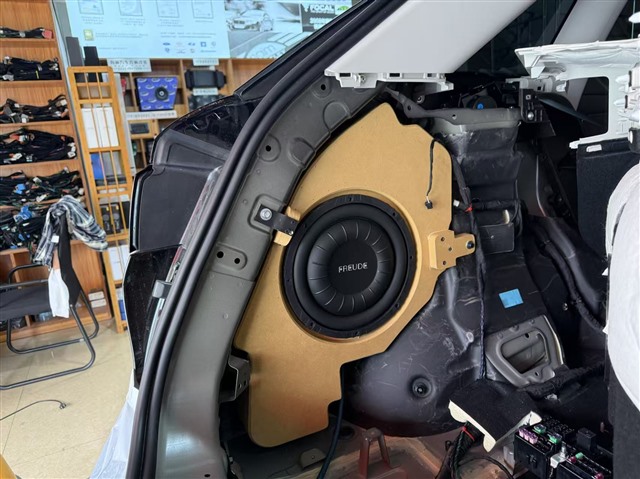 弗萊德10寸低音配備了專用箱體,將其安裝在尾箱側邊的原位位置,專用箱體能夠更好地優化低頻響應,讓低音表現更集中、更有力量。值得一提的是,整個安裝過程完成后,技術人員對尾箱內飾進行了完美還原,升級后的低音系統完全隱藏在尾箱內部,從外觀上絲毫看不到改裝痕跡,兼顧了實用性與美觀度。