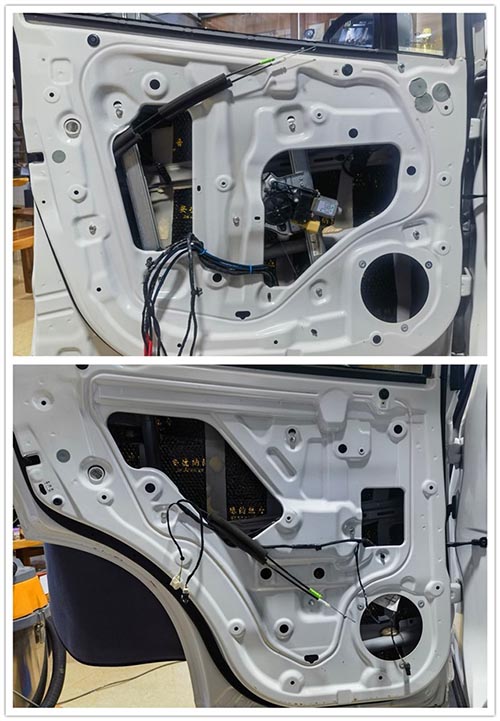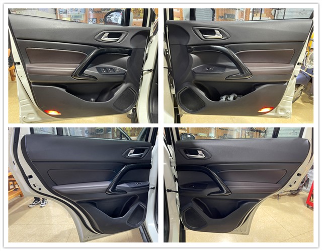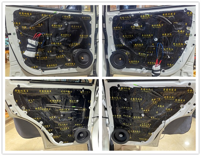 原車的喇叭和隔音都不是很好,所以我們本次改裝需要對喇叭和隔音兩個方面入手。原廠的車門內部都是用一層薄薄的塑料薄膜做防塵處理,內部鐵板并沒有做隔音,這也就是為什么我們高速行駛時車門風燥聲音很大的主要原因,改裝師使用安德納對四門進行專業隔音降噪。讓門板形成一個密封的箱體,有效阻止風噪的傳入,增強隔音效果,同時也給聲場喇叭創造了一個良好工作環境,讓喇叭發出的聲音更加優美。