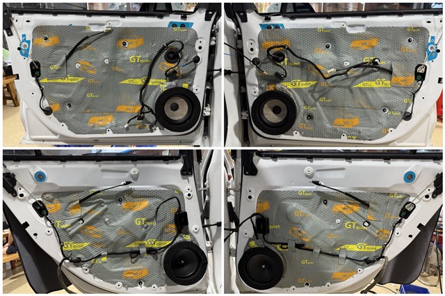 原車門板僅有一層塑料薄膜,隔音效果有限。技師拆除原薄膜后,使用GT隔音材料對四門進行了雙層隔音處理,有效抑制振動并提升車門密封性,為喇叭提供更好的工作環境。