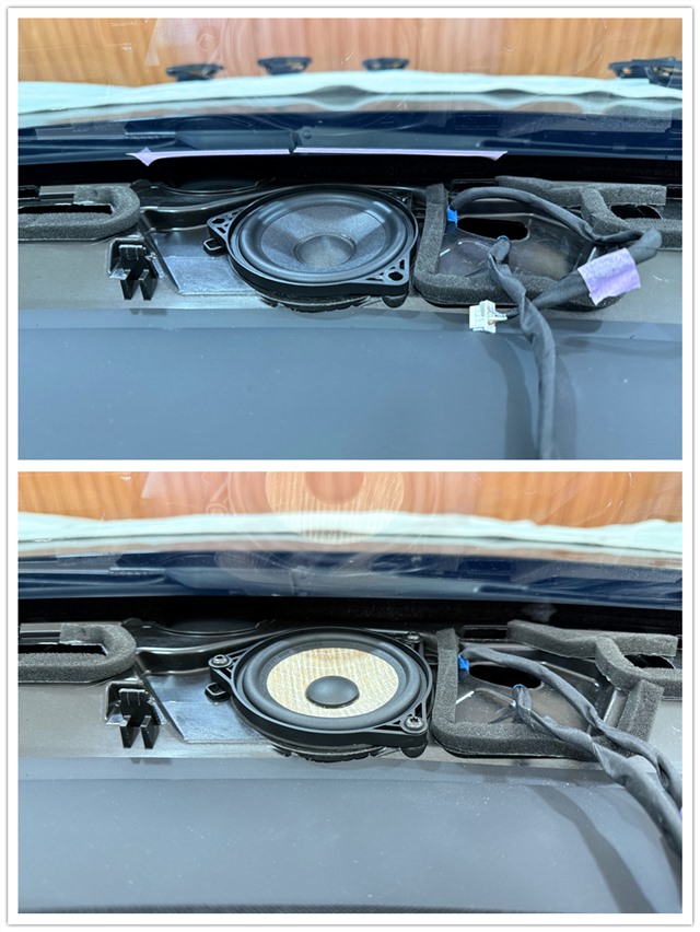 勁浪IS T3Y 100中音(下)無損替換原車喇叭(上)安裝在儀表臺兩側,無需破壞原車線路,實現“外觀無痕、音效翻倍”