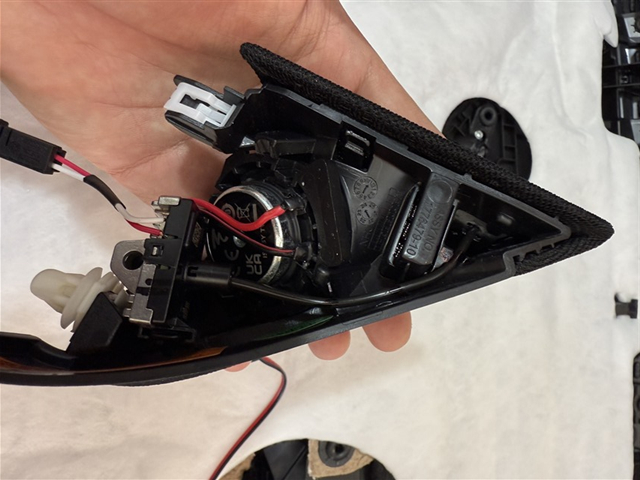 將勁浪IS T3Y 100高音固定在三角罩內,即將安裝在門板三角位