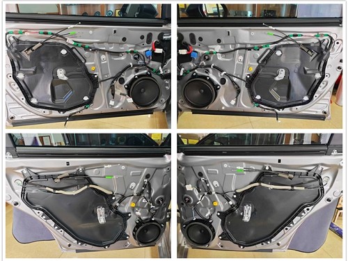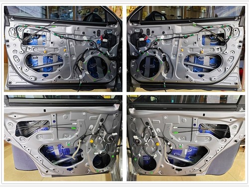 前后門板使用大能藍金剛進行第一層隔音處理,加強鈑金剛性,減少振動