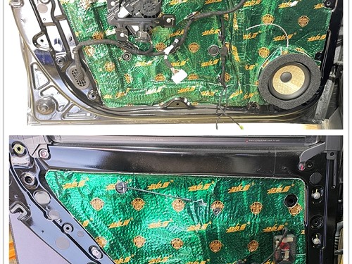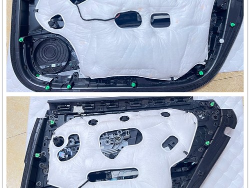 前后門板隔音后,原位無損安裝勁浪亞麻盆中低音喇叭,并且為喇叭安裝了專業(yè)的美音圈