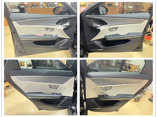 改裝前,選用大能超級盾為比亞迪E9進行專業(yè)的四門隔音,有效隔絕了外界環(huán)境的噪音,為車內(nèi)音響系統(tǒng)創(chuàng)造了一個清凈的音頻環(huán)境。前聲場采用勁浪亞麻盆兩分頻,為前排提供清晰、層次感豐富的高音和中低音效果。后聲場同樣選用勁浪亞麻盆兩分頻,與前聲場一脈相承,呈現(xiàn)出高保真的音頻效果,使乘客在后排同樣能夠享受到音樂之美。