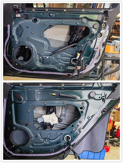 拆下門板飾蓋,可以看到原車門板沒有任何隔音材料