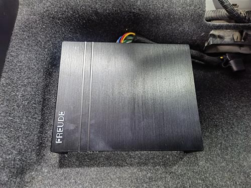 原車并無超低音單元,導致音樂聽起來很飄,不夠沉穩。為此,改裝師添加了一只弗萊德10寸超薄低音,它可以有效增加音樂低頻部分的下潛力度,讓音樂量感更足、立體感更強。