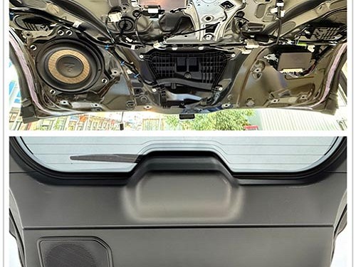 后門隔音后,改裝師在后門板上安裝了勁浪ACX-165同軸喇叭。與前聲場(chǎng)相比,后聲場(chǎng)喇叭定位稍微靠后,以提供均衡的音效體驗(yàn),使后排乘客也能感受到良好的音樂氛圍。