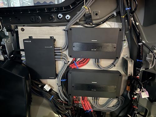 歐迪臣SR4.500四路功放、歐迪臣SR5.600五路功放安裝及弗萊德FP-8A處理器接線安裝特寫