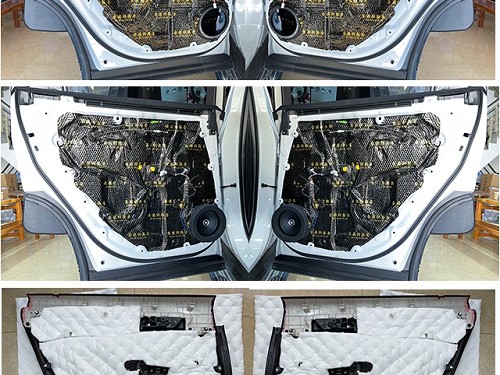 后門板施工中,四門隔音為聲場(chǎng)喇叭制作了一個(gè)密封的箱體一般,有效阻止了風(fēng)噪的傳入,為聲場(chǎng)喇叭創(chuàng)造了一個(gè)良好的工作環(huán)境。