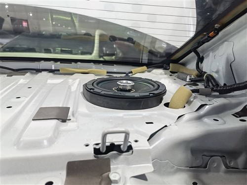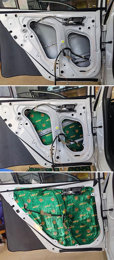 為了營造一個良好的聽音環境,升級音響前,首先用大能超級盾隔音材料對門板進行雙層隔音降噪處理,減少外來風噪的傳入,提升車內靜謐性。