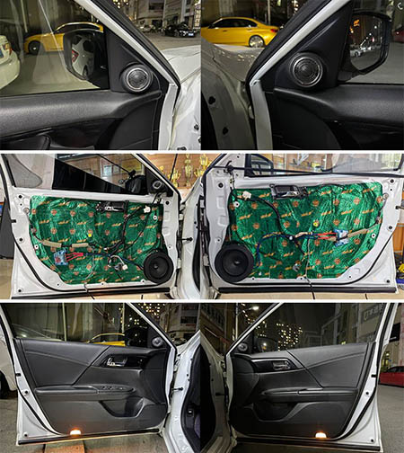 本田雅閣有較好的舒適性,可靠性和性價比也是很高的,做為家用車還是很合適的。在原車音響的配置上,喇叭配置較少做工簡陋,失真的情況很嚴重,無法滿足對音樂有更高要求的車主的聽需。這雅閣車主來到了泉州海林音響改裝店,在試聽之后,選擇了詩芬尼音響系統,來提升愛車音質。