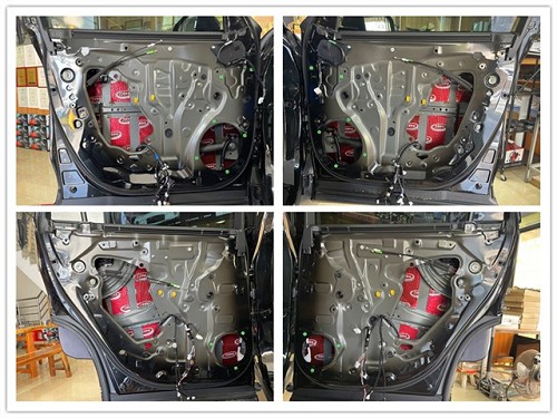 門板是風(fēng)噪的主要傳入部位,改裝師不僅使用大能紅派對門板做了雙層止振處理,讓門板形成一個密封箱體,同時還使用超級溫莎,對門板內(nèi)飾做了填充吸音處理,從而有效阻止了風(fēng)噪的傳入。