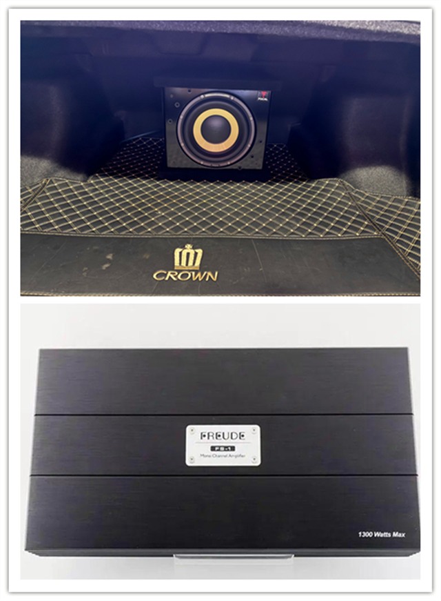 想要音響效果好,加裝超低音必不可少。為滿足車主對(duì)低頻的需求,我們?cè)谖蚕浒惭b了一只黃盆10寸低音喇叭,并配備一臺(tái)弗萊德FS-1單路功放進(jìn)行驅(qū)動(dòng)。升級(jí)后,低音表現(xiàn)力十足,低頻下潛深且富有彈性,為整套音響系統(tǒng)提供了強(qiáng)勁的低頻支持。