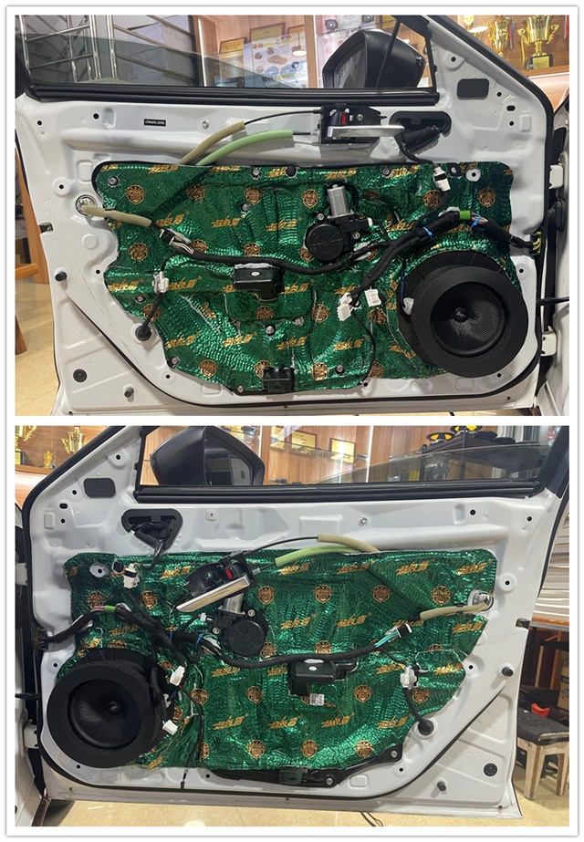 前門板使用大能超級盾隔音后,將詩芬尼雅樂中低音無損安裝在門板上