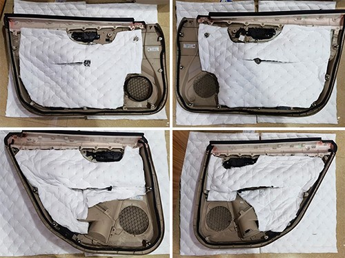 門板內(nèi)外粘貼大能超級盾,形成一個密閉的箱體空間,為喇叭提供一個更為合理的運作空間,使其效果得到充分的發(fā)揮。飾蓋加裝優(yōu)質(zhì)吸音棉,吸收并過濾各頻段的噪音。